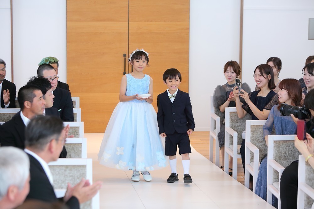 大切なご友人ゲストからの問いかけで誓いを交わし、リングガール・ボーイが可愛らしく指輪を届けてくれました♡