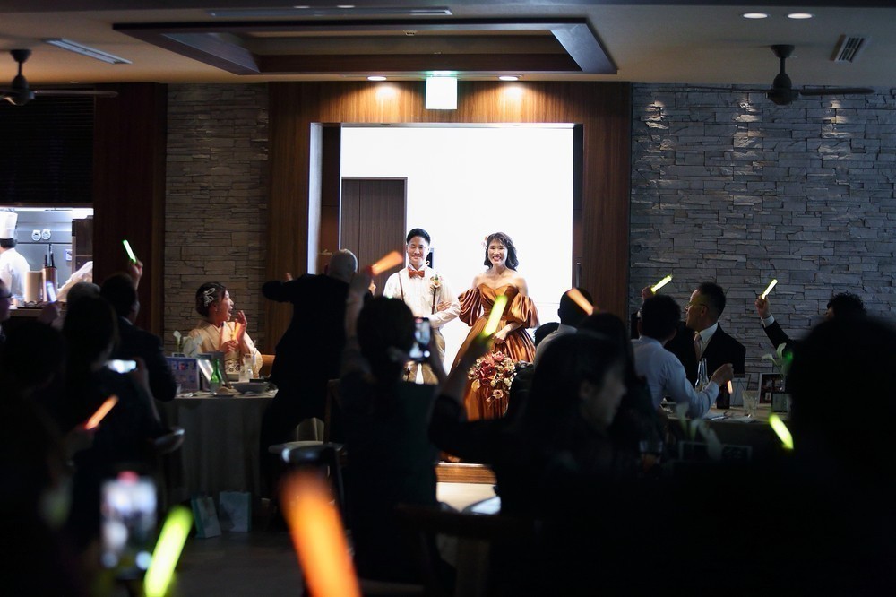 お色直し入場ではペンライトを使った色あてクイズで盛り上がり、最後まで笑顔が続くご結婚式となりました♡