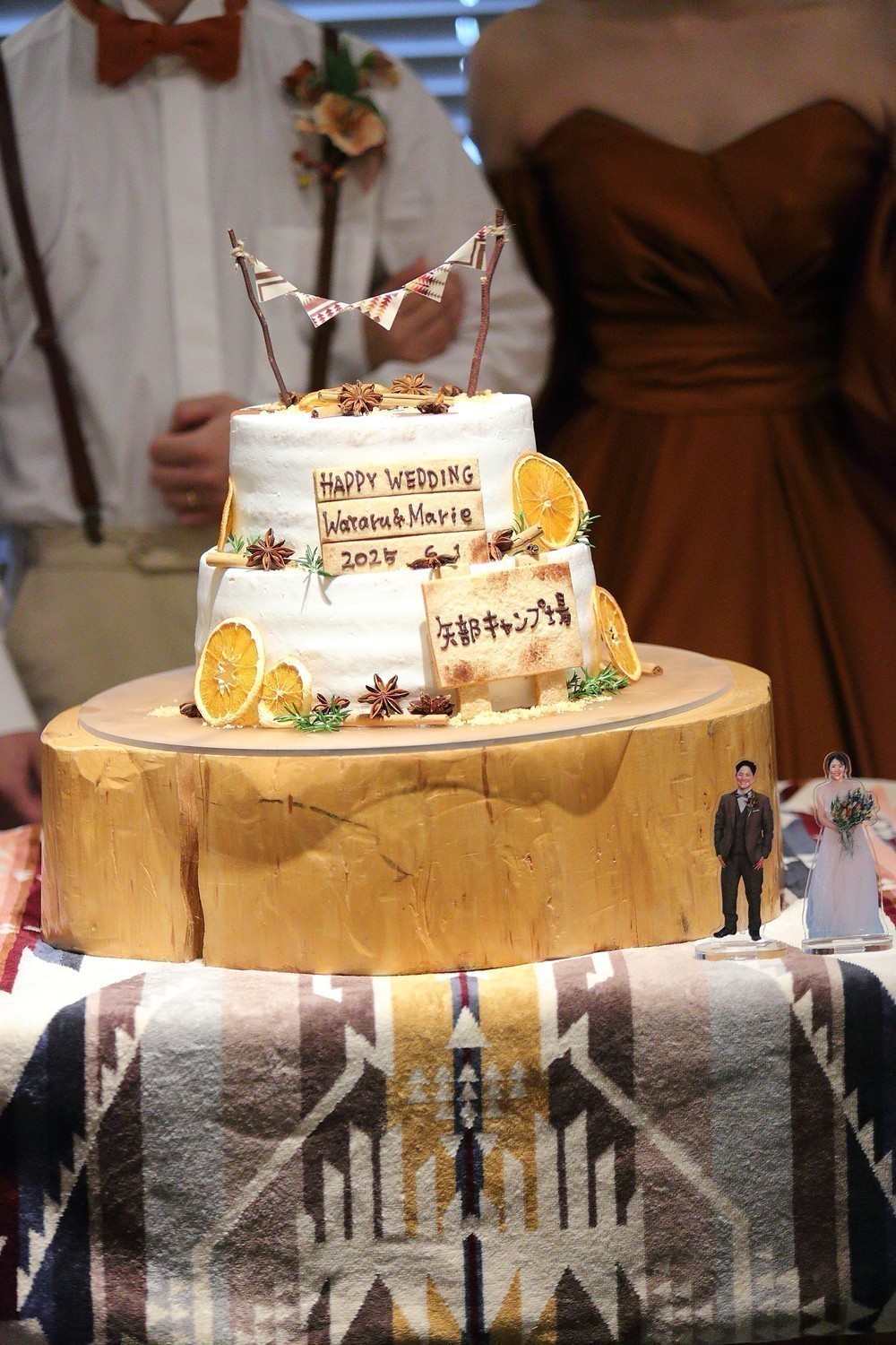 披露宴でもキャンプをイメージしたこだわりケーキが登場し、おふたりらしさをさらに感じられるお時間に!