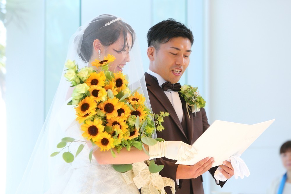 開放感あふれる空間の中、お二人の言葉で誓いを交わしました!